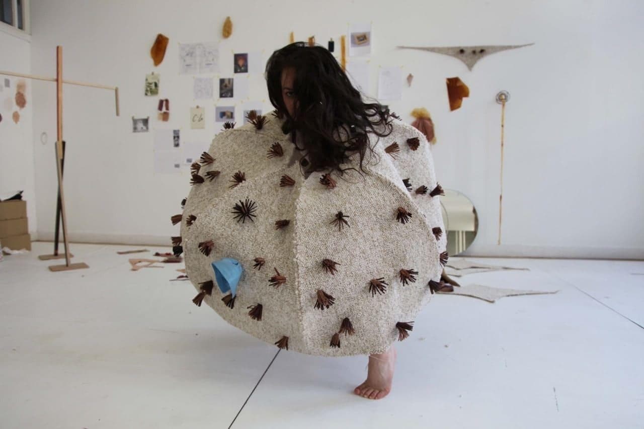 Mercedes Azpilicueta est une artiste argentine plasticienne, performeuse, engagée sur des thèmes féministes et post-colonialistes, mêlant Histoire, performance et matière au service d’une production sensible, corporelle, et intense. Je la rencontre lors de sa résidence à la Villa Vassilief à Paris en 2017 et collabore alors régulièrement autour de plusieurs expositions. Nous créons ensemble des costumes à partir de matières molles, détournées ou sauvées qui deviennent des personnages mystérieux. Ces corps/costumes résonnent avec nos corps éprouvés par une société dure, écrasante dans lequel l’instabilité de la nature, la vieillesse des chairs, la diversité des corps peinent à émerger comme modèle alternatif de société inclusive.